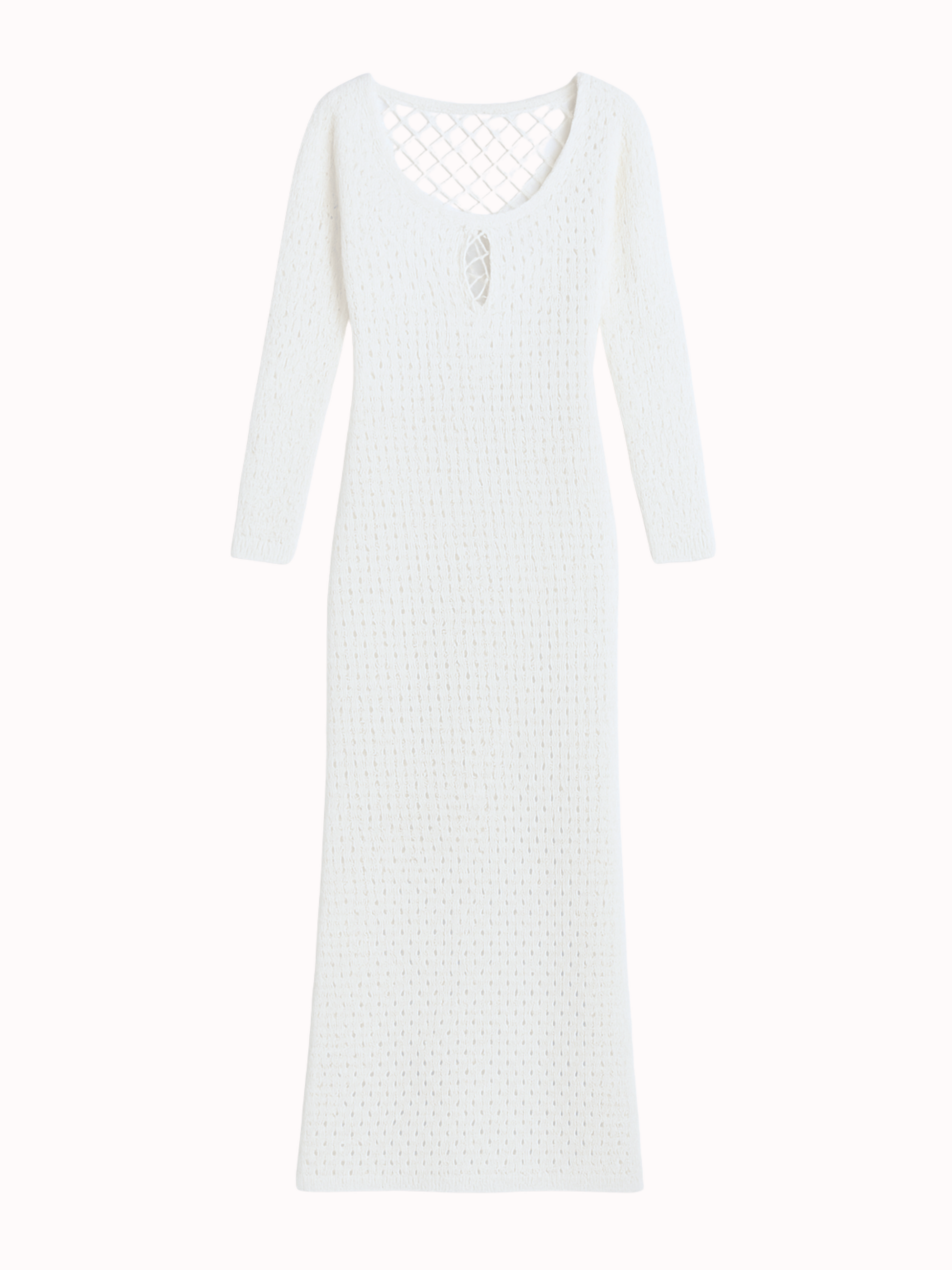 The Isla Mesh Maxi is a sultry seaside dream—crafted in sheer, stretch-knit mesh with a high-waisted silhouette and a keyhole front detail that teases with elegance. This full-length stunner hugs the figure while allowing your swimwear to shine through. Lightweight and breathable, it’s the perfect piece to slip over your bikini for sunset cocktails or beach club soirées.